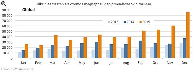 2015-ben összességében közel 540 ezer hibrid (PHEV) és tisztán elektromos meghajtású (EV) autót értékesítettek a világon, ami 70%-kal meghaladja a 2014-ben eladott gépjárművek számát. Ebből majdnem 200 ezer az utolsó negyedévben talált gazdára, ami még jobban szemlélteti a háttérben meghúzódó, dinamikusan növekvő trendet.