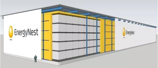 Az EnergyNest a betonra épít, igaz, nem a hagyományos betonra, hanem egy titkos keverékre, amelyet Pal G. Bergan tudós, a vállalat társalapítója a HeidelbergCement nevű német konszernnel közösen fejlesztett ki. Ez a beton nagy mennyiségű hőt tud különösen hosszú ideig eltárolni, miközben a hőveszteség csekély. A betonban acélcsöveket helyeztek el, amelyekben gőz vagy akár 450 Celsius-fokos különleges olaj kering magas nyomás mellett. Egyetlen tárolóegység akkora, mint egy 40 láb hosszú konténer. Egy ilyen modulban körülbelül 2 megawattórányi energia tárolható el és az egyes modulok éppúgy egymásra helyezhetők, mint a legókockák. Ezáltal minden üzem és közösség a saját igényei szerint alakíthatja ki az egységeket. Ahhoz, hogy például egy Hamburg méretű nagyvárost egy szélcsendes éjszakán is el lehessen látni elegendő megújuló energiával, annyi tárolómodult kellene felszerelni, amennyi egy nagy konténerszállító hajóra felfér. A gyárak számára létrehozhatók 10, 100 vagy akár 1000 egységből álló telepek is.