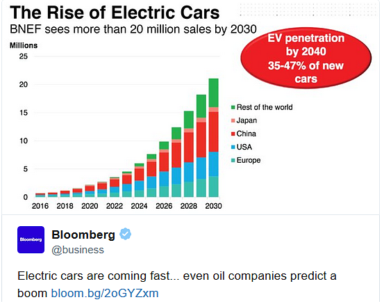 Általános megütközést keltett a megjelentek körében a Total által a Bloomberg New Energy Finance április 25-i konferenciáján ismertetett előrejelzés. A világ egyik legnagyobb olajvállalata ugyanis az elektromos autók olyan gyors ütemű elterjedését várja 2030-ig, amely eddig példátlan volt az olajipar meghatározó szereplői között. A trendekhez igazodva az olaj- és gázipar számos nagy szereplője a megújuló energiaforrások, illetve az elektromos autózás területei felé is kiterjeszti üzleti tevékenységét, korábban azonban a témában jóval visszafogottabb várakozások láttak napvilágot.